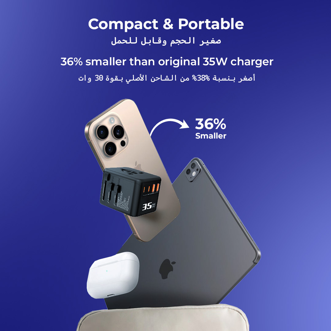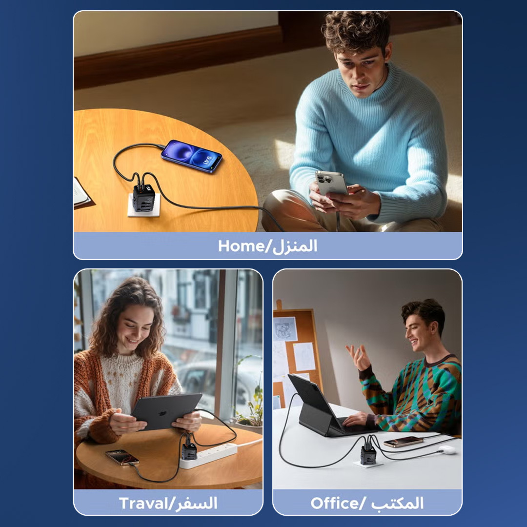 30W 2C1A GaN Charger Type C USB C Adapter USB Wall Plug Fast iPhone Charger Multi Ports Charger Portable Compatible With iPhone 16 Series Galaxy 25 24 Series iPad Pro Air Mini Apple Watch Xiaomi Huawei – Black