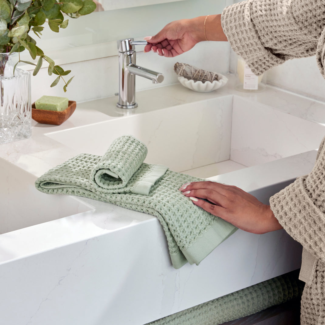 With maximum surface area for increased air circulation, our original open weave fabric rapidly dries itself, for a towel that’s cleaner and fresher, longer.